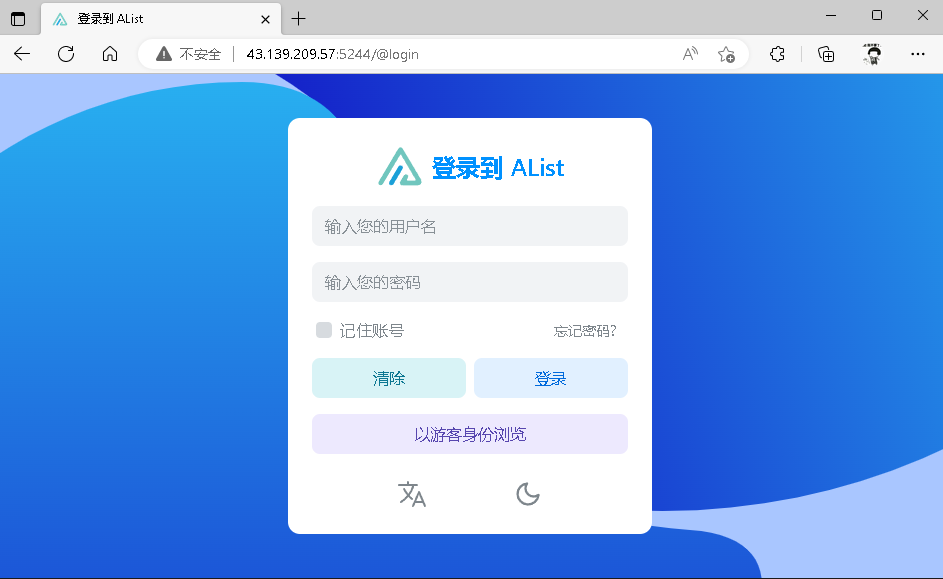 打开 http://ip:5244 可以看到登录页面
